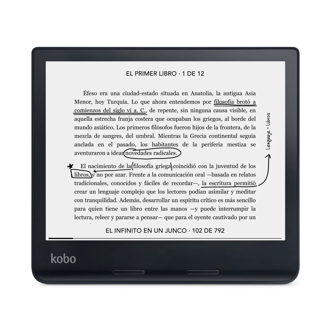 Diseñado para inspirarte con cada lectura, Kobo Sage ofrece todas las características de un Kobo en un paquete elegante, además de tecnología Bluetooth® inalámbrica para que puedas escuchar tus audiolibros Kobo*. La sofisticada pantalla táctil alineada E Ink Carta 1200 de alta definición y 8” ofrece un rendimiento superior y gran contraste con cero reflejos. Disfruta aún más de tu experiencia con Kobo Sage gracias a sus accesorios elegantes y personalizados. La SleepCover de Kobo Sage** y la nueva PowerCover** se han creado específicamente para proteger el dispositivo y ofrecerte una experiencia de alta calidad. La compatibilidad con Kobo Stylus** te permite evadirte con tus lecturas favoritas y anotar ideas conforme avanzas en la lectura para guardarlas en otros dispositivos gracias a la compatibilidad con Dropbox. Disfruta de la tranquilidad de tener todas las funciones al alcance de tu mano y de saber que tienes nuestra mejor y más envolvente experiencia de lectura.